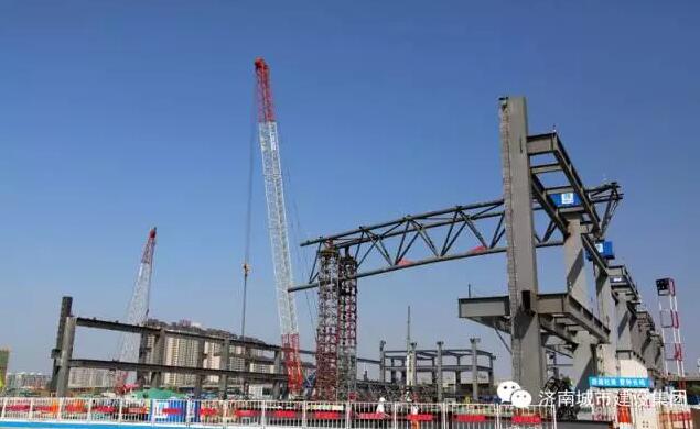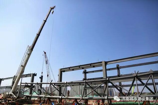 9月8日上午,濟(jì)南西部會(huì)展中心項(xiàng)目的第一榀(pǐn,屋架量詞)屋面鋼結(jié)構(gòu)桁架吊裝完成,五號(hào)展館的鋼結(jié)構(gòu)主體雛形初現(xiàn),濟(jì)南西部會(huì)展中心的建設(shè)步伐又推進(jìn)了扎實(shí)一步。