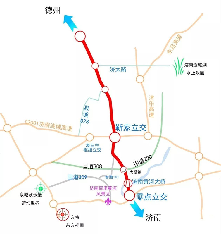 G104京福線濟南德州界至大橋鎮(zhèn)段改建工程全長29.69公里,起于德州市臨邑縣夏口大橋南,途經(jīng)濟陽縣太平鎮(zhèn)、孫耿鎮(zhèn),止于天橋區(qū)大橋鎮(zhèn)G220、G308交叉口,一級公路標(biāo)準(zhǔn),設(shè)計時速80公里/小時。