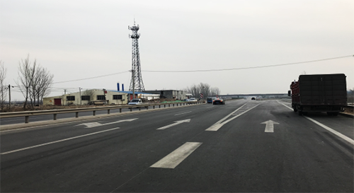 為提示駕駛員按車道行駛,避免駕駛員疲勞駕駛,該項目除設(shè)置縱向振動標(biāo)線外,橫向還設(shè)置了更加醒目的紅色振動標(biāo)線,既提高了車輛行駛的安全性,又提升了標(biāo)線視覺上的警示功能,給單調(diào)的路面增添了一份色彩。