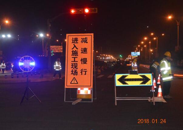 當(dāng)時(shí)氣溫在零下10℃左右,施工人員、材料、機(jī)械全部準(zhǔn)備完畢,現(xiàn)場參與施工人員達(dá)200余人、各類設(shè)備20余臺(tái)。截止到次日凌晨4點(diǎn),東營路至淄博路段施工區(qū)域已按照業(yè)主要求封閉完成并正式開始施工。