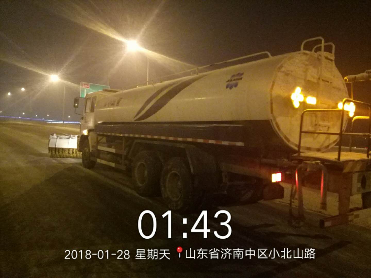 1月27日,受冷空氣影響,濟南市區(qū)大范圍降雪,為避免雨雪極端天氣對高架交通通行造成影響,按照《濟南市人民政府辦公廳關于做好冰雪和強降溫天氣防范應對工作的緊急通知》的要求,濟南市政公用資產管理運營有限公司子公司濟南泉澤建設管理運營有限公司按照"提前預防、充分準備、快速反應、協(xié)調聯(lián)動"的原則,啟動雨雪天氣應急機制。二環(huán)西南延高架運營維護小組立即出動,調動保潔分包單位開展鏟雪除冰、路面融雪等應急處置工作。