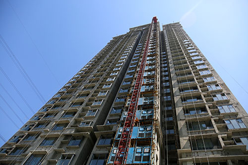 目前,吳家堡安置房一期工程全部17棟單體結(jié)構(gòu)及二次結(jié)構(gòu)已經(jīng)完成,17棟樓的屋面防水、室內(nèi)抹灰也已完成,正在進行室內(nèi)瓷磚鑲貼、混凝土地面及外墻抹灰施工,鋁合金窗安裝已完成70%,電梯的安裝已全面展開。在配套方面,裙房及商業(yè)結(jié)構(gòu)、車庫頂板防水均已完成,室外回填土已完成70%,園林綠化施工單位已進場。