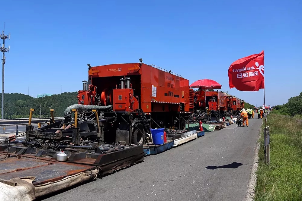 由于工藝和設備的限制,原來高速公路養(yǎng)護施工時必須全封閉交通。而使用就地熱再生技術施工時,各設備前后相連、連續(xù)動態(tài)施工,只占用一個車道,不用封閉其他車道交通,大大提高了施工期間高速公路的通行能力。