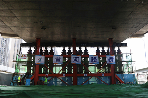 濟南市北園大街快速路西延建設(shè)工程是2017年“全市城市建設(shè)工程重點推進(jìn)項目計劃”確定的重點工程之一,是快速路網(wǎng)規(guī)劃系統(tǒng)中的重要組成部分,濟南城市建設(shè)集團(tuán)所屬濟南黃河路橋公司承建北園西延工程四標(biāo)段,其中匡山立交改造是整個工程的重點和難點,自新建F、G匝道正式通車后,目前,主線第32聯(lián)箱梁頂升施工正式完成,頂升時長25天,最大頂升高度4.202m,打破了濟南橋梁頂升最高、修路斷絕交通的慣例兩項記錄。