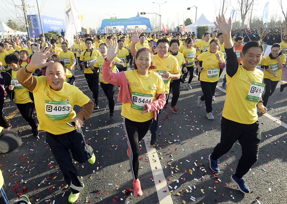 10月28日上午8點,中海地產(chǎn)·2018濟南環(huán)華山湖國際半程馬拉松在濟南華山腳下鳴槍開跑。來自24個省區(qū)市的5000余名跑友以及13名國外選手參賽。山東省體育局局長李政,濟南市委常委、宣傳部部長楊峰,副市長王桂英,歷城區(qū)委書記吳承丙,濟南日報報業(yè)集團董事長馬利,濟南市體育局局長高立文,濟南廣播電視臺臺長孫世會,濟南城市建設集團董事長李國祥等出席開幕式并為開賽鳴槍。