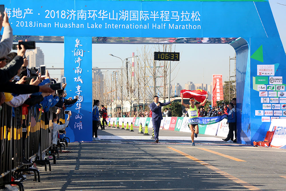經(jīng)過激烈角逐,男子組前三名分別由棗莊選手李子成和兩名肯尼亞選手獲得,女子組前三名分別由遼寧選手王佳偉和兩名濟南選手獲得。除了半程馬拉松,賽事還設置了迷你馬拉松(5公里)以及家庭親子跑,大家共享了運動的快樂。來自國內(nèi)外的5000余名跑馬愛好者在華山湖畔用腳步丈量華山生態(tài)人文新城,感受“齊煙九點”和“鵲華煙雨”的魅力。