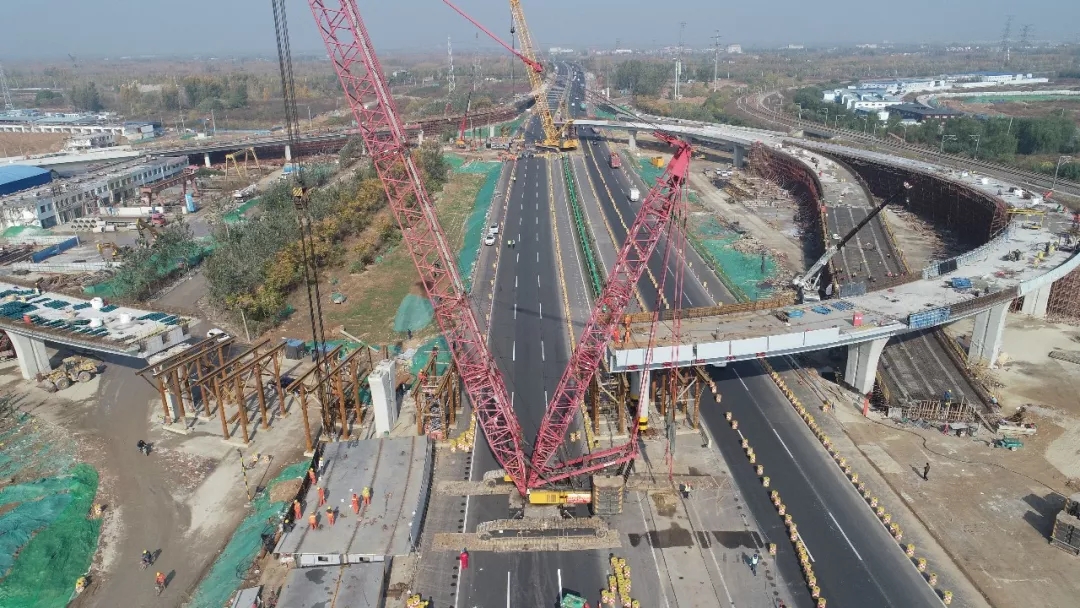 跨京臺(tái)高速鋼箱梁吊裝是整個(gè)工程極為關(guān)鍵的節(jié)點(diǎn),吊裝段位于跨京臺(tái)高速的南北兩處匝道,分別長(zhǎng)54米和60米,每段重達(dá)170余噸,起吊噸位大,施工過程需克服跨京臺(tái)高速、高空作業(yè)等不利因素,城建集團(tuán)周密籌劃、科學(xué)組織,先后5次邀請(qǐng)行業(yè)內(nèi)專家召開專項(xiàng)論證會(huì),最終確定“單向封閉,兩匝道同時(shí)吊裝”方案,加大人、機(jī)、物投入,把整個(gè)作業(yè)時(shí)間由計(jì)劃5個(gè)半小時(shí)縮短至不到4小時(shí),將高速通行影響降到最低,為工程節(jié)約了5天寶貴時(shí)間,為項(xiàng)目通車奠定堅(jiān)實(shí)基礎(chǔ)。