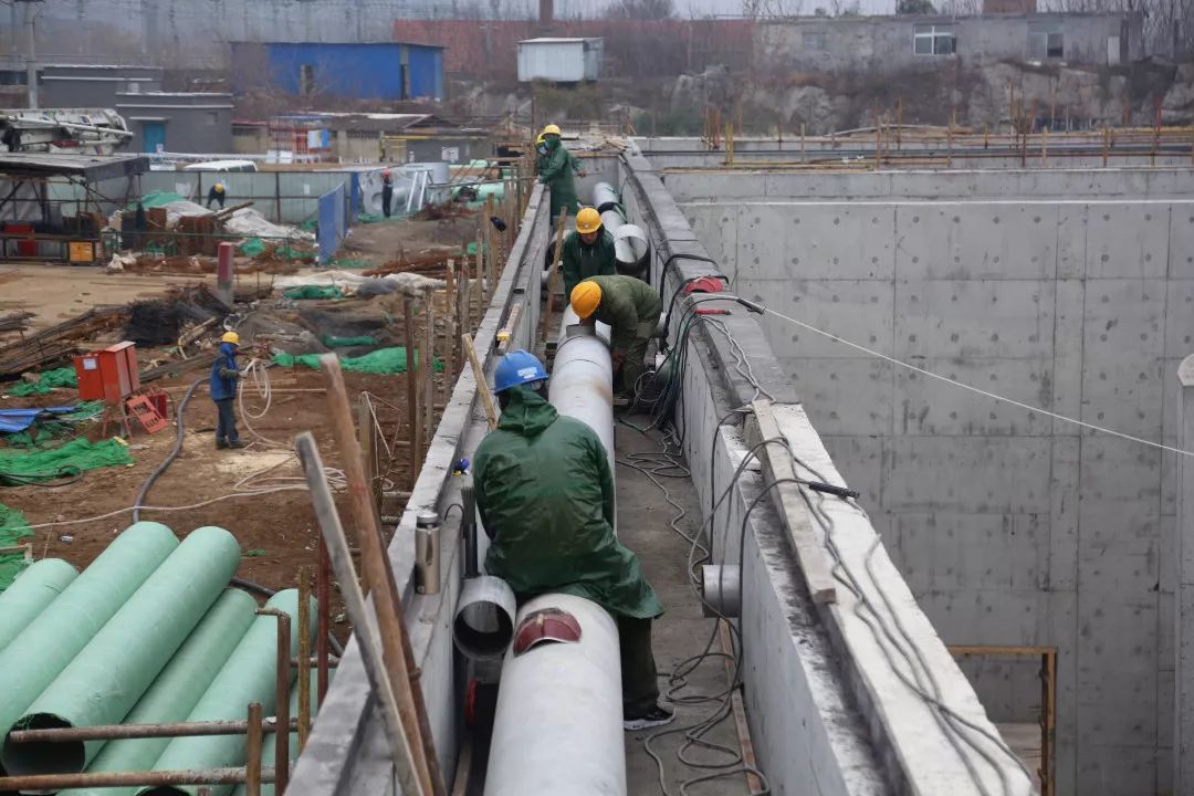 AAO反應(yīng)池是污水處理最重要的環(huán)節(jié),主要由厭氧池、缺氧池、好氧池等組成,優(yōu)化污水處理的工藝,是一種反應(yīng)器少、步驟少、效率高的污水處理生化反應(yīng)池系統(tǒng),同時利用內(nèi)循環(huán)反硝化技術(shù)對城市污水進(jìn)行脫氮除磷處理,可減少后續(xù)沉淀池藥劑使用。截止目前,已完成主體結(jié)構(gòu)施工,正在進(jìn)行反應(yīng)池的管道焊接、安裝工作。