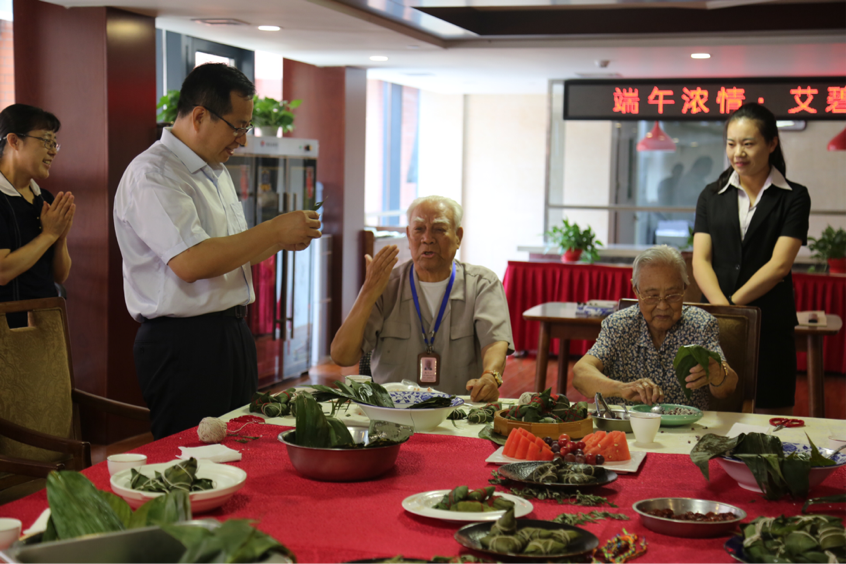 五月五,是端陽。門插艾,香滿堂;吃粽子,灑白糖;龍舟下水喜洋洋。6月18日,山東濟(jì)南養(yǎng)老服務(wù)中心的老人們迎來了入住以來的第一個端午節(jié),服務(wù)人員們也忙得不亦樂乎。
