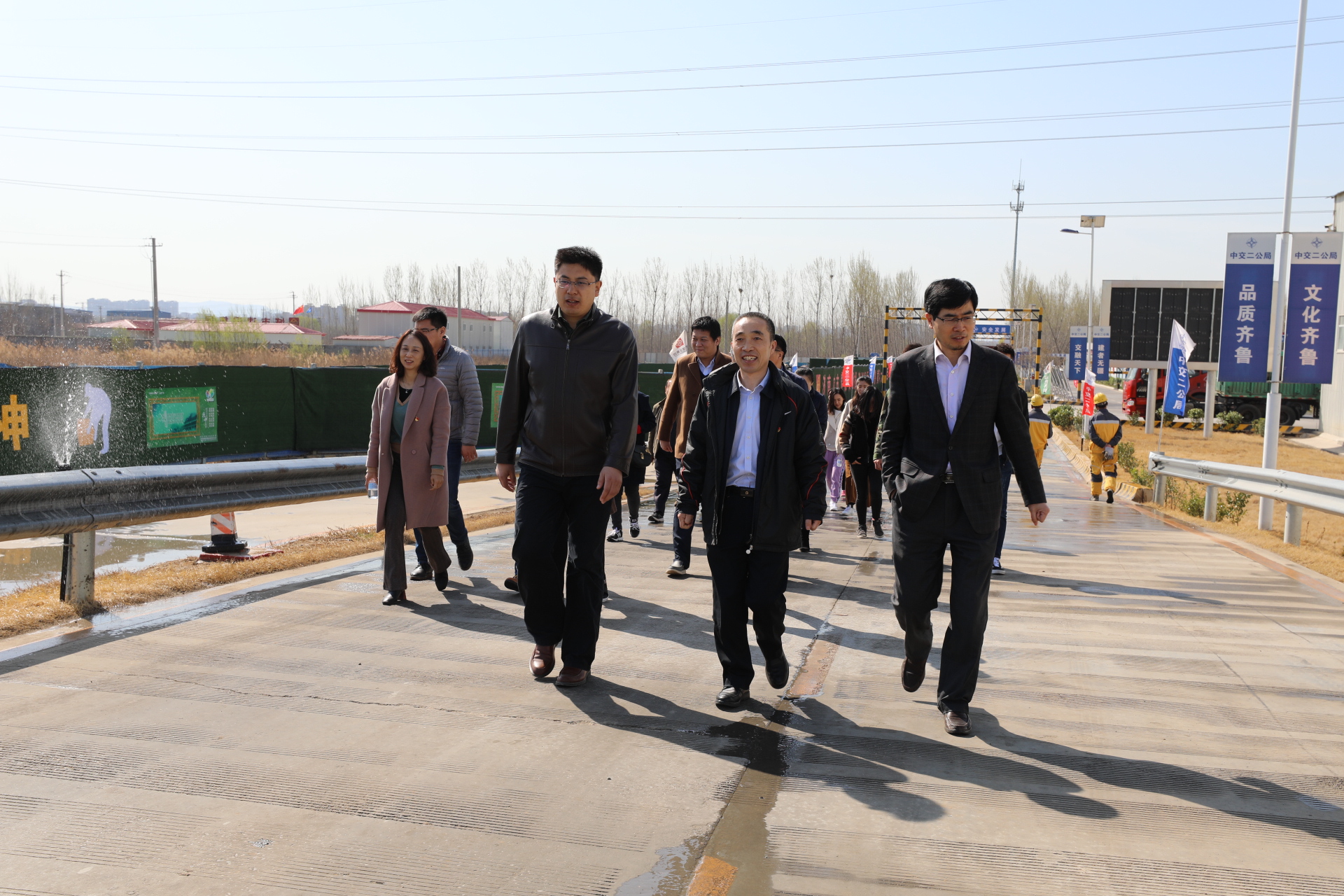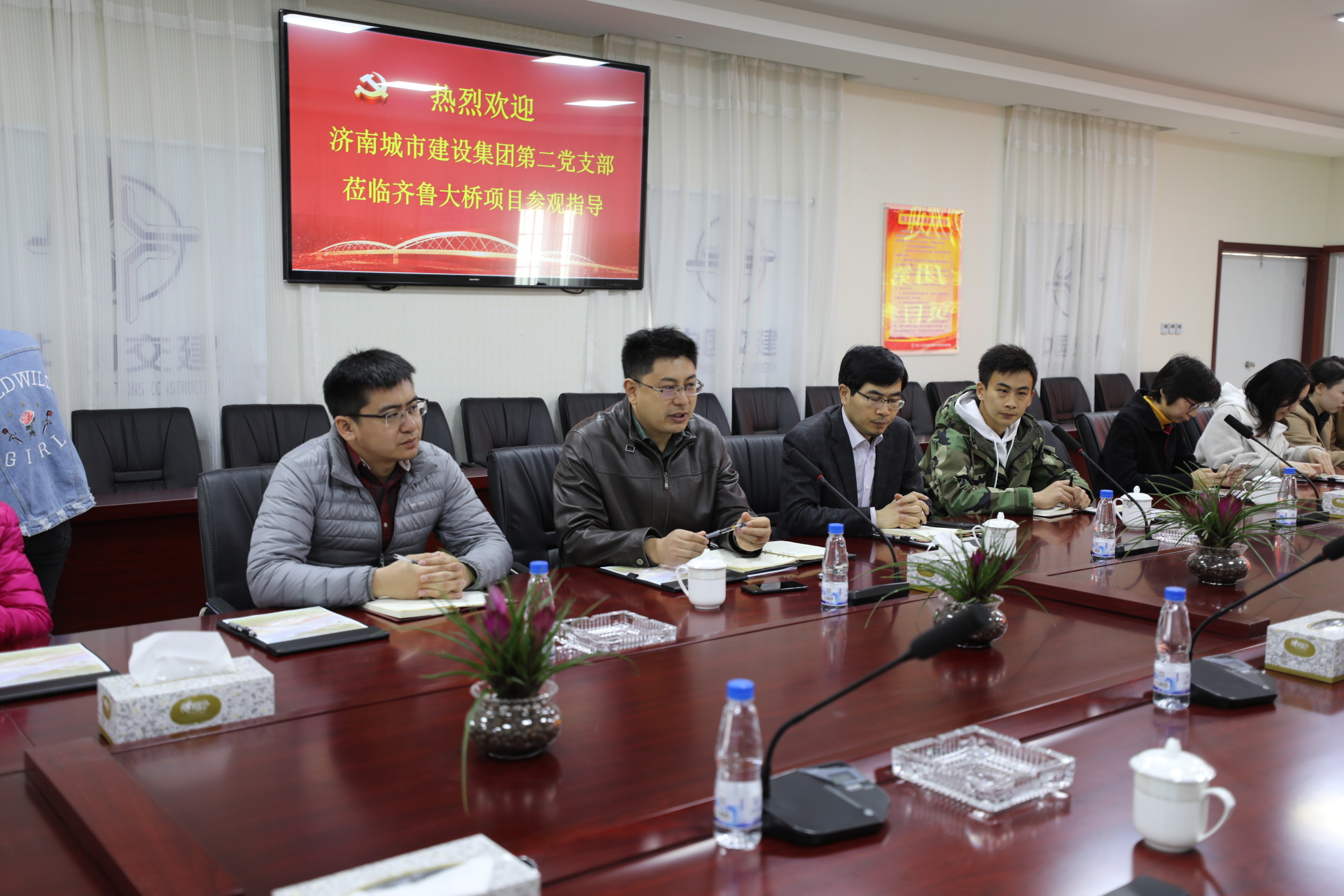 全體人員在集團(tuán)總會(huì)計(jì)師范天云的帶領(lǐng)下,首先來(lái)到齊魯大道北延工程項(xiàng)目經(jīng)理部,與公司副總經(jīng)理趙世超及工作人員進(jìn)行了座談,雙方首先介紹了各自支部情況及組織建設(shè)情況并進(jìn)行了交流。隨后,項(xiàng)目負(fù)責(zé)人對(duì)工程進(jìn)行了詳細(xì)的介紹,并參觀了齊魯黃河大橋橋梁模型、觀看了黃河大橋建設(shè)宣傳片,展示了齊魯黃河大橋的建設(shè)過(guò)程及原理。作為目前同類橋型跨徑世界第一網(wǎng)狀吊桿系桿拱橋,其所展現(xiàn)的創(chuàng)新技術(shù)、建成效果以及打造的“黃河橋梁文化”令人驚嘆和期待。