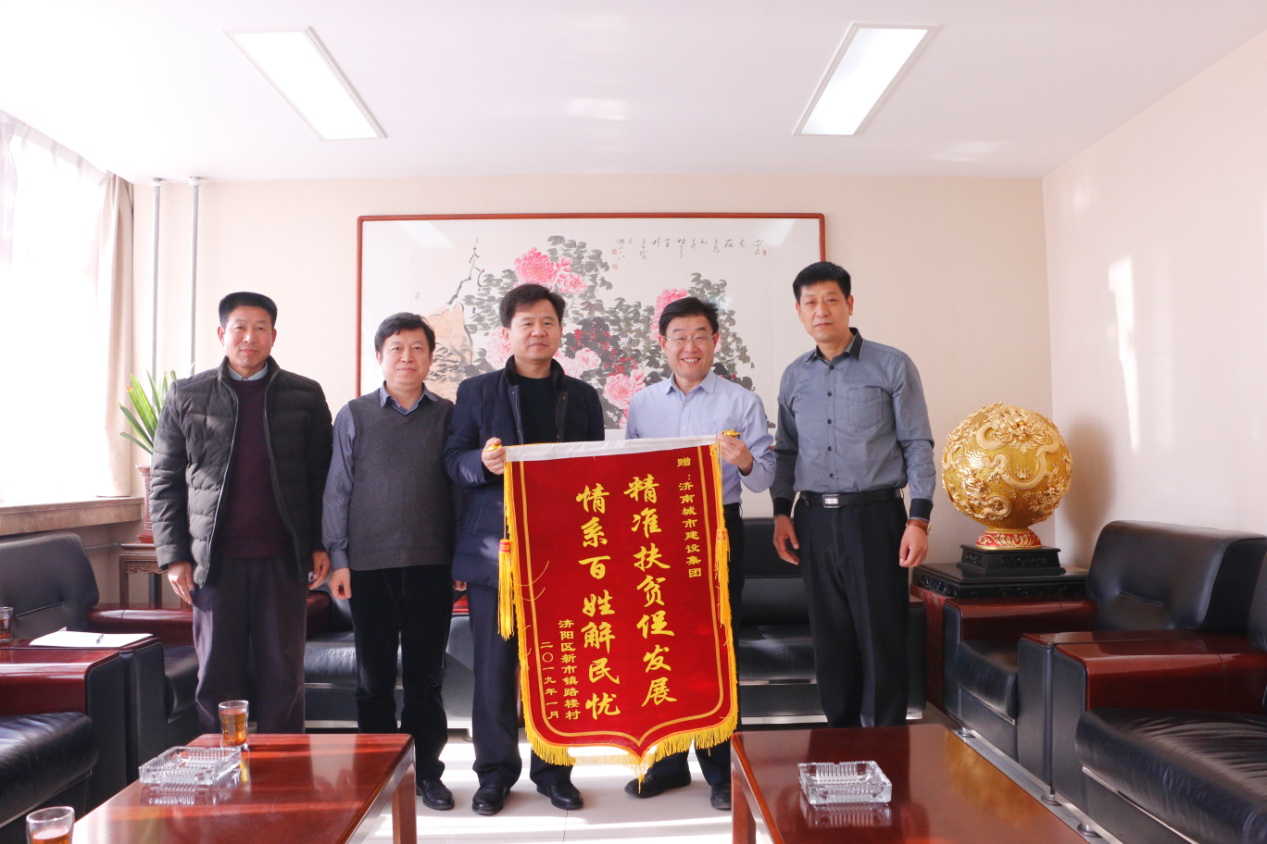 1月25日,濟(jì)陽區(qū)新市鎮(zhèn)黨委副書記王勇、鎮(zhèn)扶貧辦主任劉俊青、路樓村支部書記路和勇、路樓村“第一書記”張慶紅一行到濟(jì)南城市建設(shè)集團(tuán)就幫扶工作進(jìn)行回訪,并為集團(tuán)送來錦旗,集團(tuán)副總經(jīng)理安玉坤、集團(tuán)辦公室副主任徐峰參加活動。
