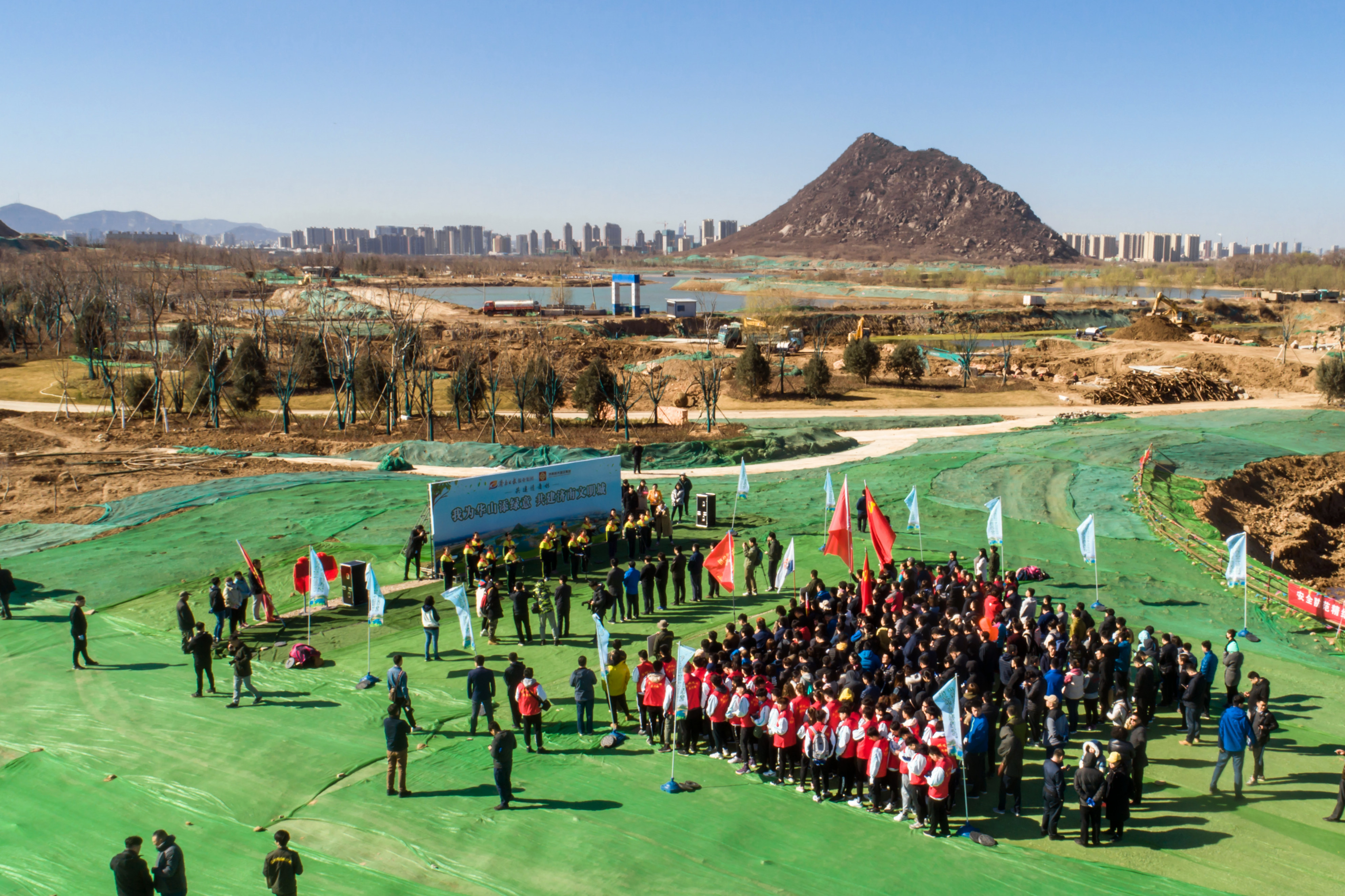 在華山歷史文化濕地公園內(nèi),來自雙方單位的干部職工、泉城義工、小記者代表等共計近500人春種華山,并在華山設(shè)立“記者志愿林”和“愛心林”。濟(jì)南城市建設(shè)集團(tuán)黨委書記、董事長李國祥,濟(jì)南日報報業(yè)集團(tuán)董事長、黨委書記、濟(jì)南日報社社長馬利共同為“記者志愿林”和“愛心林”揭牌。