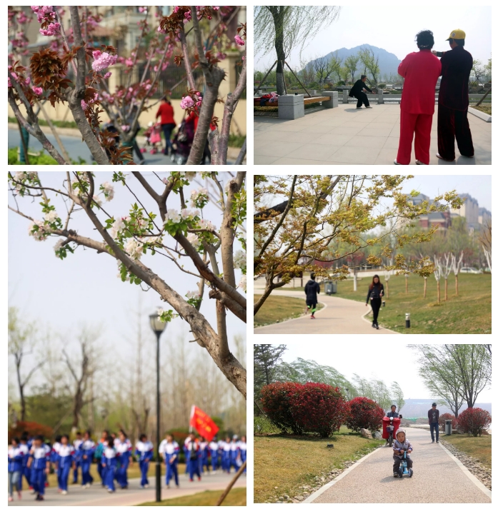 在華山歷史文化濕地公園一期內(nèi),湖邊碧桃、海棠、櫻花等樹(shù)木盛開(kāi),連翹燦爛,色彩斑斕,步移景異,快車(chē)道旁草木叢生,丁香花開(kāi)沁人心脾,蜂蝶相伴,生機(jī)勃勃,吸引眾多市民游客前來(lái)游玩賞花。