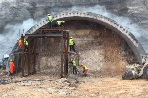 為嚴(yán)保工程質(zhì)量,打造品質(zhì)隧道,項(xiàng)目克服巖體較破碎等不良條件,采用新奧法原理施工,嚴(yán)格“管超前、嚴(yán)注漿、短開挖、強(qiáng)支護(hù)、早封閉、勤量測(cè)”十八字方針。隧道鉆孔爆破施工嚴(yán)格控制超欠挖和控制周邊眼間距以及藥量。開挖完成后及時(shí)支護(hù),鋼筋網(wǎng)片鋼拱架施工完成及時(shí)噴射混凝土。在確保安全施工的前提下,嚴(yán)保工程質(zhì)量,為同類工程積累豐富施工經(jīng)驗(yàn)。