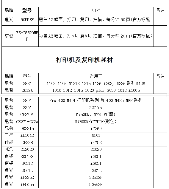 現(xiàn)對集團(tuán)打印機(jī)、耗材及周邊設(shè)備采購選取供應(yīng)商進(jìn)行詢價,有關(guān)事項(xiàng)通知如下,歡迎各單位參加報價。