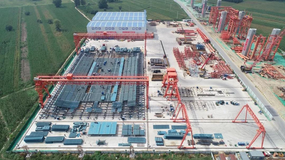 目前,按照集團北跨橋隧“大干六個月、決勝秋冬季”會戰(zhàn)安排部署,項目各項工作正有序推進中。項目一標樁基、承臺、墩臺身施工有序推進,完成跨邯膠鐵路(45+72+45)m左中右三幅162m連續(xù)梁澆筑、其他段落連續(xù)梁積極展開施工。項目二標鉆孔樁、承臺、墩柱等各項施工有序推進中。北側(cè)鋼箱梁板單元進場累計約4300t,南側(cè)鋼箱梁板單元進場累計約2900t,南、北岸鋼箱梁第一輪總拼分別完成約60%。