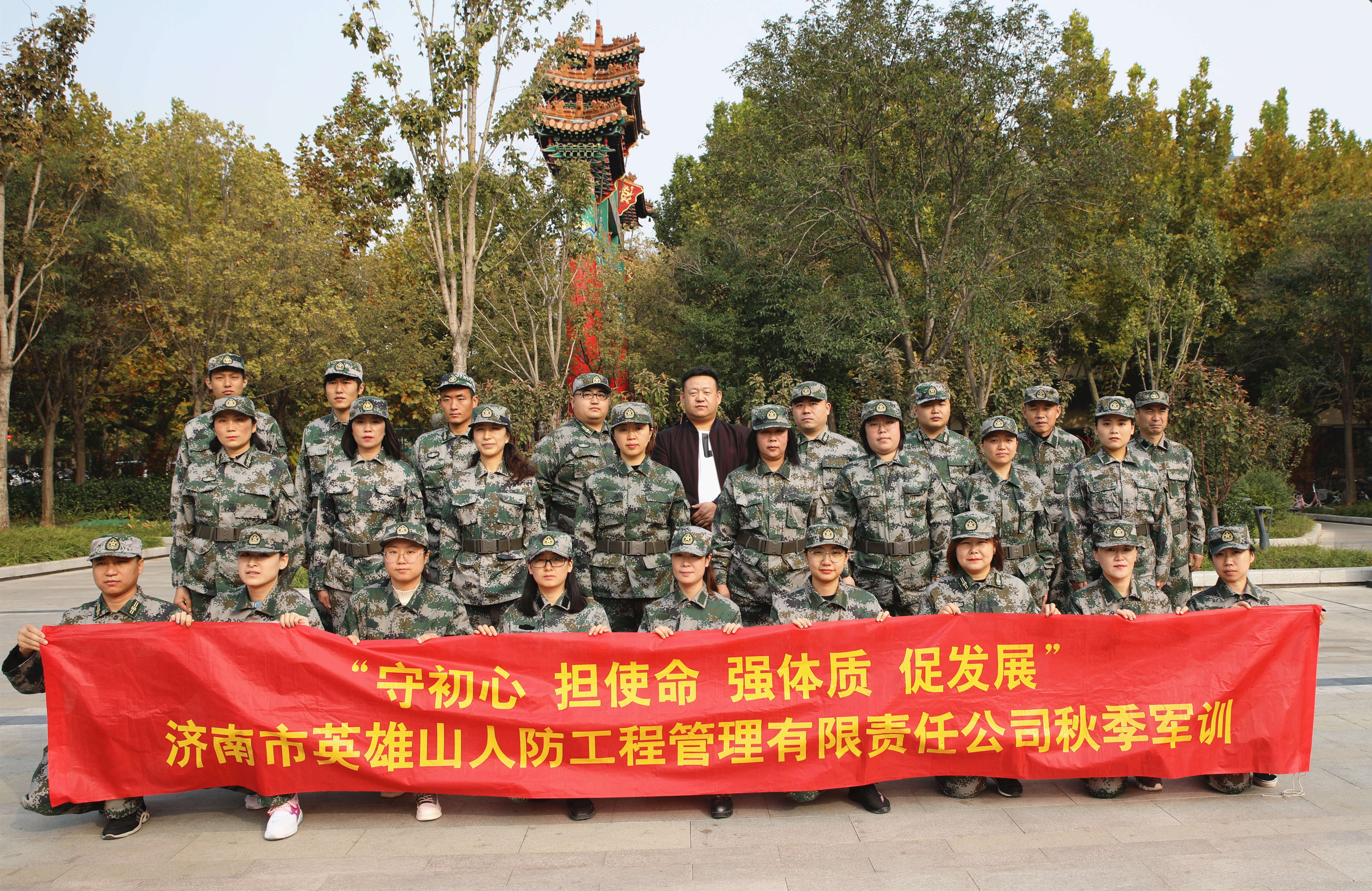 金秋送爽桂飄香,職工秋訓(xùn)斗志昂。為激發(fā)廣大職工的愛國主義、集體主義意識,加強(qiáng)公司管理,提升員工的工作效率和公司的整體形象,營造積極上進(jìn)的精神風(fēng)貌和工作態(tài)度。濟(jì)南市英雄山人防工程管理有限責(zé)任公司按照“一年兩訓(xùn)”的有關(guān)規(guī)定,從10月8日至11月8日組織全體職工,進(jìn)行了為期一個月的秋季軍訓(xùn)。