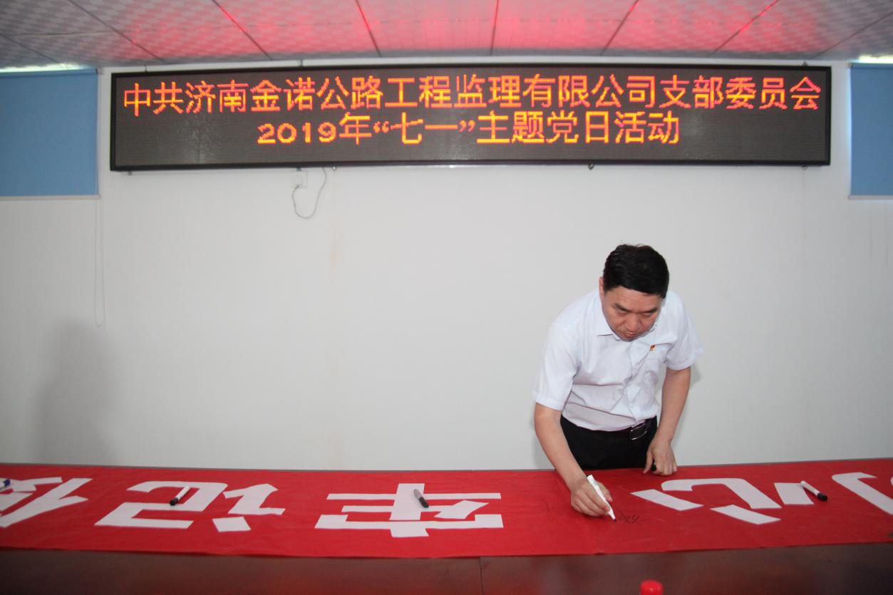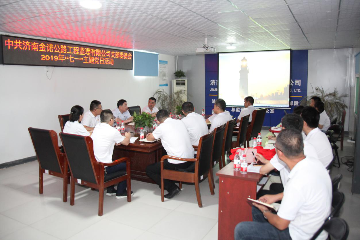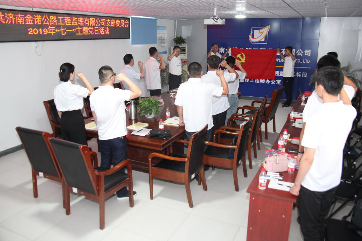 為慶祝中國共產(chǎn)黨成立98周年,喜迎祖國70周年華誕,充分發(fā)揮黨員的先鋒模范作用,深入推進(jìn)“不忘初心 牢記使命”主題教育活動開展,錘煉黨員“忠誠、干凈、擔(dān)當(dāng)”的政治品格,實現(xiàn)以“黨建促生產(chǎn)”的目標(biāo)。7月1日上午濟南金諾公路工程監(jiān)理有限公司黨支部在濟南至樂陵高速公路南延工程總監(jiān)辦舉行了“打贏交通樞紐攻堅戰(zhàn) 創(chuàng)建黨員服務(wù)先鋒隊”活動啟動儀式暨“慶七一”主題黨日活動。公司黨員、積極分子共20余人參加活動。
