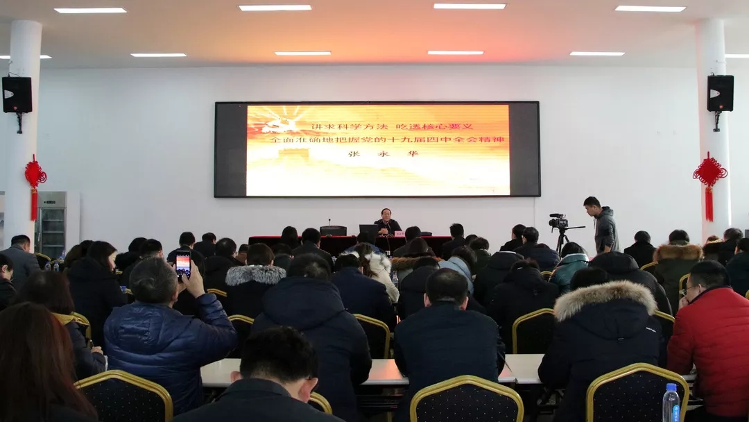 為更好地學(xué)習(xí)貫徹黨的十九屆四中全會精神,1月10日,集團特邀市委、市紀委黨的十九大、十九屆四中全會精神、黨風(fēng)廉政建設(shè)宣講團成員,市紀委監(jiān)委宣傳部副部長、一級調(diào)研員張永華同志到集團作黨的十九屆四中全會精神專題宣講。集團領(lǐng)導(dǎo)班子成員及集團機關(guān)支部全體黨員參加活動。
