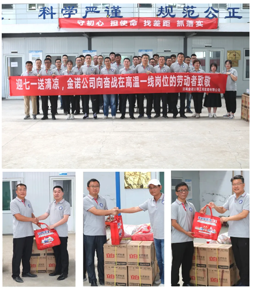 炎炎夏日,氣溫持續(xù)攀升,工地現(xiàn)場更是酷熱難當。公司心系一線員工,堅持以人為本的發(fā)展理念,開展了“夏送清涼”活動,金諾公司領(lǐng)導班子深入一線,為工作在一線的職工發(fā)放洗衣液、沐浴露、洗發(fā)露、牙膏牙刷、毛巾等勞保用品以及綠豆等防暑用品,把清涼送到一線,把關(guān)懷送到職工心坎,給全體職工帶來問候,讓大家感受到公司濃濃關(guān)懷和夏日里的清涼。