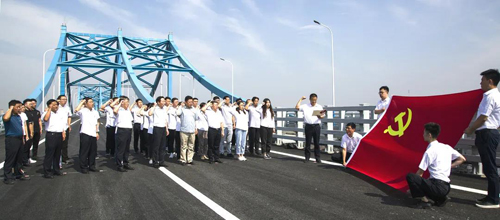 在活動中,建設(shè)集團資產(chǎn)管理部黨支部和市政資產(chǎn)運營公司黨委共40余名黨員站在濟樂高速南延線公路現(xiàn)場觀摩了濟樂高速南延工程的建設(shè)情況,并面對黨旗重溫入黨誓詞。黨員們聲音鏗鏘有力,表達著每一位黨員在未來的道路上將會更加堅定地擁護黨的領(lǐng)導(dǎo),努力踐行共產(chǎn)黨人的初心和使命。