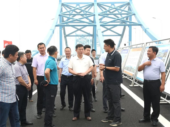 7月21日,集團黨委書記、董事長張海平帶隊到濟樂高速南延項目察看項目建設(shè)推進情況,并召開專題會議調(diào)度北跨橋隧項目建設(shè)工作。集團副總經(jīng)理許為民參加活動。
