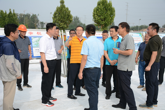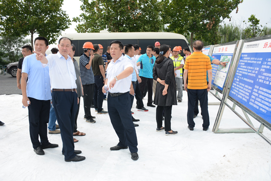 8月8日下午,濟(jì)南市城鄉(xiāng)交通運(yùn)輸局局長(zhǎng)賈玉良,城市建設(shè)集團(tuán)黨委書記、董事長(zhǎng)張海平等一行,來到由集團(tuán)公司承建的奧體西路齊煙攬華工程項(xiàng)目施工現(xiàn)場(chǎng),察看工程建設(shè)情況。集團(tuán)公司黨委書記、董事長(zhǎng)張明生,副總經(jīng)理趙振華及分公司相關(guān)人員陪同察看。