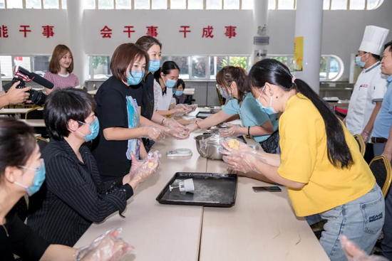 活動現(xiàn)場,集團政工部負責(zé)同志代表集團向大家致以了節(jié)日的問候和祝福。隨后,面點師傅將制作月餅的皮、餡料、手套、模具等工具發(fā)給大家,“將面皮搓圓后攤平,然后把餡兒放到中間,以食指和拇指的力量慢慢向上收口,合攏后放入模具……”在師傅的悉心教導(dǎo)下,大家有條不紊地開始制作,五人一組,分工明確,各司其職。幾分鐘后,一個個制作精美的月餅就完成了。