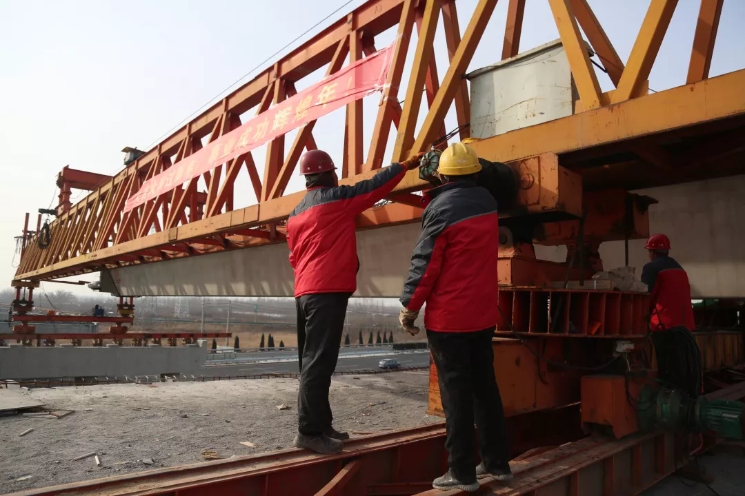 在嚴格落實各項防疫措施的前提下,項目部有序開展復工趕工,努力將疫情對項目建設帶來的影響降到最低。春節(jié)期間,項目組織留守的架梁工人,管理人員組成青年突擊隊進行交通導改、箱梁架設,春節(jié)期間共架設箱梁11片,順利跨越青銀高速(青島至銀川方向)。