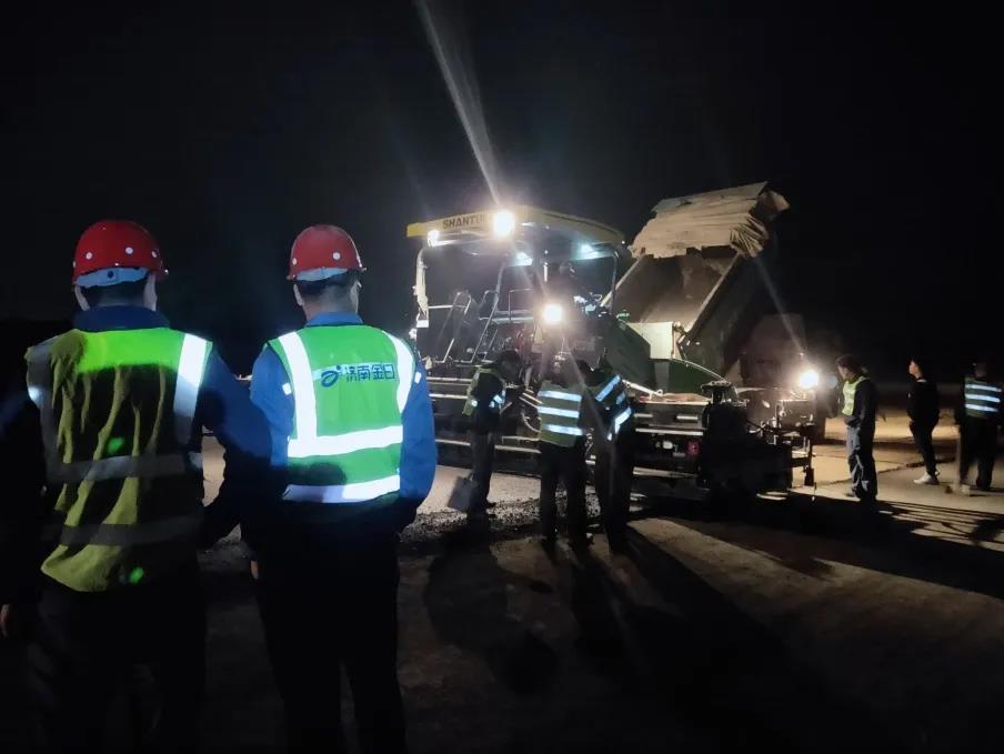 春節(jié)期間,預(yù)制梁也從未間斷生產(chǎn),為保證預(yù)制梁生產(chǎn)架設(shè)工作,綜合場站內(nèi)管理人員與工人共計(jì)20余人,始終堅(jiān)守崗位,并組織成立青年突擊隊(duì),進(jìn)行交通導(dǎo)改、箱梁架設(shè),順利跨越青銀高速(青島至銀川方向)。全面復(fù)工后,項(xiàng)目生產(chǎn)、防疫兩手抓,為降低傳播風(fēng)險(xiǎn),根據(jù)實(shí)際情況進(jìn)行分散施工,陸續(xù)在工地上開展了預(yù)制梁澆筑、架設(shè)、路基翻曬碾壓、橋面鑿毛、現(xiàn)澆梁施工、場地硬化等多個(gè)作業(yè)面。