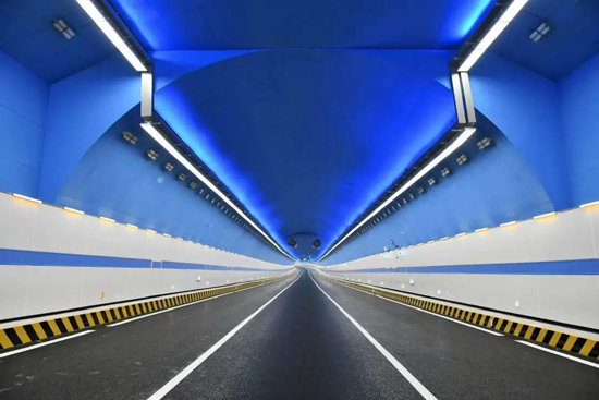 隧道內(nèi)以“山水泉城”為主題,以泉水藍為底色,打造會“識天氣”的隧道燈光秀。采用3種色調(diào)+4種冷暖光源+6種感光模式,搭配出與晴、雨、云等不同天氣呼應效果。駕行其中仿佛置身藍色泉底,點點星光飾燈,既消除視覺疲勞,提高了行車誘導安全性,還愉悅駕乘人員心情,令人舒適放松。