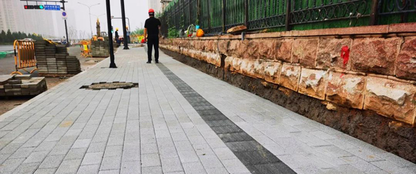 針對井蓋的頭號問題“異響”,試行新版井蓋,精加工、增重量,提高安全性能,統(tǒng)一外觀設計,徹底消除異響來源。檢查井均采用預制裝配式,避免檢查井沉降對道路產(chǎn)生的不良影響。在井蓋更換過程中,總結(jié)推廣檢查井蓋更換“十步法”,從切割到安裝,每一步驟都精心操作,施工過程中多次找平,科學測算填裝瀝青厚度,將精細化管理落到細節(jié),確保井蓋與道路嚴絲合縫。人行道鋪裝中使用高科技新材料Pc仿石磚,比普通花磚耐磨,防滑、美觀、色差小、顏色靈活,切割容易,可以根據(jù)需要切割成任意尺寸,鋪裝樣式多樣化。