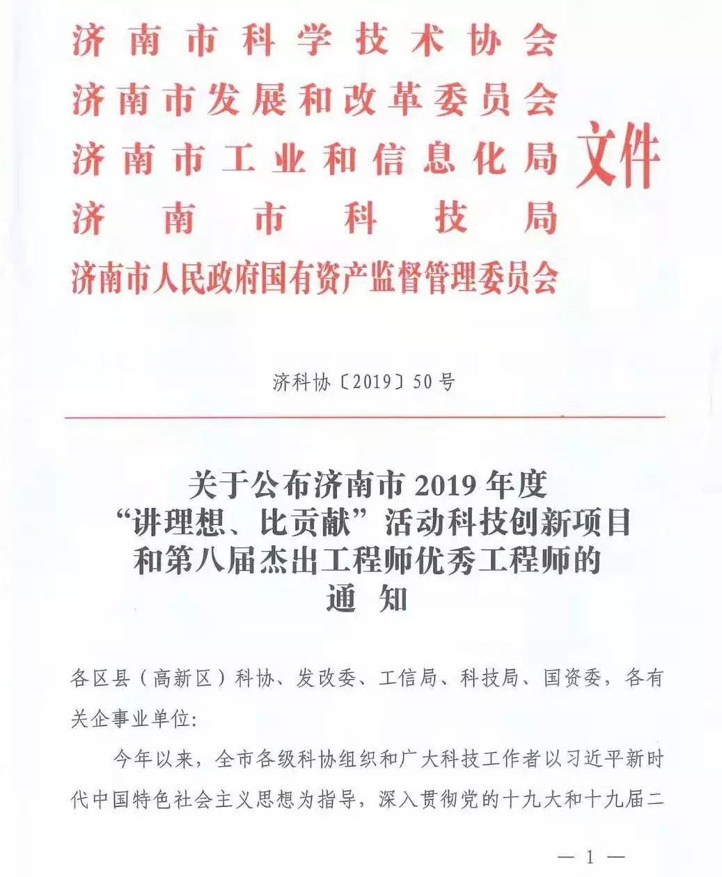 為了更好激勵(lì)科技工作者胸懷自主創(chuàng)新夢(mèng)想,把實(shí)現(xiàn)自身價(jià)值同企業(yè)發(fā)展和實(shí)現(xiàn)中國(guó)夢(mèng)緊密結(jié)合起來(lái),倡導(dǎo)和樹(shù)立社會(huì)主義核心價(jià)值觀,弘揚(yáng)創(chuàng)新精神和創(chuàng)新文化,日前,根據(jù)《濟(jì)南市“講理想、比貢獻(xiàn)”活動(dòng)實(shí)施辦法》,濟(jì)南市發(fā)改委、經(jīng)信委、科技局、國(guó)資委、科協(xié)聯(lián)合組織開(kāi)展了“講理想、比貢獻(xiàn),奮力實(shí)現(xiàn)中國(guó)夢(mèng)”活動(dòng)。經(jīng)過(guò)各級(jí)科協(xié)組織推薦、專(zhuān)家評(píng)審、社會(huì)公示和市“講理想、比貢獻(xiàn)”活動(dòng)領(lǐng)導(dǎo)小組審定,濟(jì)南金衢公路勘察設(shè)計(jì)研究有限公司《協(xié)同設(shè)計(jì)及路網(wǎng)數(shù)據(jù)庫(kù)管理系統(tǒng)》獲得濟(jì)南市2019年度科技創(chuàng)新項(xiàng)目獎(jiǎng)。