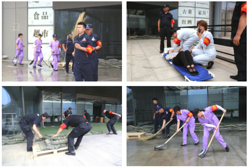 6月9日上午9點(diǎn),防汛應(yīng)急演練活動正式開始,本次演練模擬暴雨極端天氣背景下,物業(yè)單位發(fā)現(xiàn)汛情后立即啟動防汛應(yīng)急預(yù)案,采取筑沙袋墻、快速處置積水、轉(zhuǎn)移商品至安全處、救護(hù)傷員等一系列防汛搶險(xiǎn)措施。整個演練過程組織有序、響應(yīng)快速、配合默契,妥善的處置了河水倒灌及水患。
