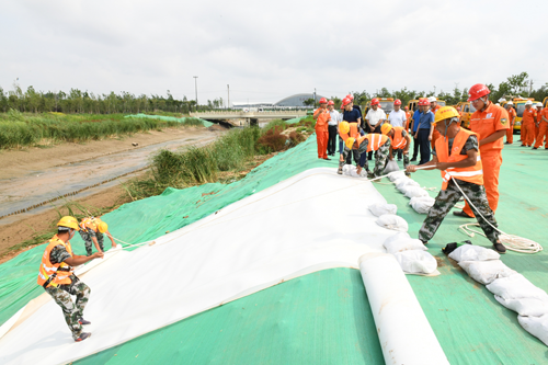 為進一步檢驗防汛應(yīng)急預(yù)案的科學(xué)性、有效性和可操作性,提高應(yīng)急反應(yīng)和防汛搶險能力,6月24日上午,城建集團在龍脊河項目施工現(xiàn)場舉行“濟南城建集團2020年防汛應(yīng)急演練”。山東省應(yīng)急管理廳防汛抗旱處處長王秀中,濟南市應(yīng)急管理局副局長魏強、黨組成員李學(xué)軍、防汛抗旱處處長周凱、科長楊志斌,城建集團總經(jīng)理牟曉巖,副總經(jīng)理呂守明、馬烽及分(子)公司經(jīng)理、安全分管經(jīng)理等150余人參加了演練活動。