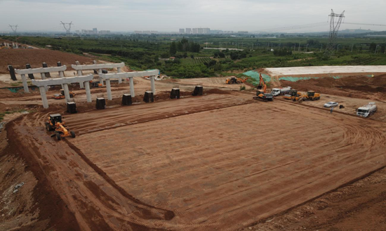 大東環(huán)二標段路基總挖方223.77萬方,總填方309.7萬方。為了確保項目建設的順利進行,項目部及早安排部署,從2018年底正式開展路基施工,從測量放樣、原地面清表、挖土方、填土方等各個環(huán)節(jié)都做到有條不紊、有序推進,積極利用有利天氣,挖掘機、推土機、壓路機等來回穿梭轟鳴,并進行積極協(xié)調(diào),確保各個工作面都有機械運轉(zhuǎn),大大提高了施工速度,同時進行細節(jié)把控,路基邊部采用液壓夯補強、搭接部位鋪設土工格柵、軟土地基采取摻灰處理等,推進進度同時保證了工程質(zhì)量。10月7日完成全部路基施工任務。