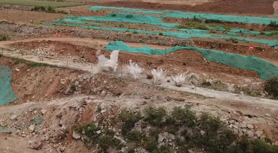 工程設(shè)計規(guī)劃中要對雞山主峰進(jìn)行整體挖方,石方爆破段位于濟(jì)南經(jīng)十東路以南,高新區(qū)雞山村東南側(cè),距離最近的居民樓僅為41米,爆破同時兼顧周邊的學(xué)校宿舍和多家廠區(qū)不受影響,路基填筑工程同樣難點重重,除了一層層的填土,只生活和建筑垃圾就有100多萬立方米,施工時最多60多輛運(yùn)輸車同時作業(yè)。