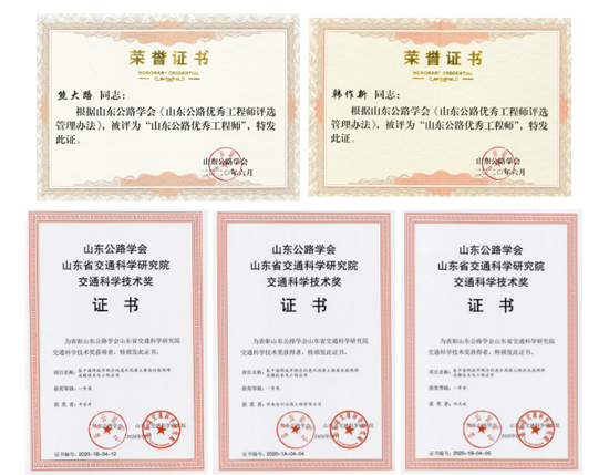 金曰公司總經(jīng)理熊大路、金諾公司總經(jīng)理韓作新榮獲第四屆“山東公路優(yōu)秀工程師”榮譽(yù)稱號(hào)。金曰公司《基于海綿城市理念的透水混凝土路面性能保障關(guān)鍵技術(shù)及工程應(yīng)用》科研成果榮獲山東公路學(xué)會(huì)山東省交科院交通科學(xué)技術(shù)一等獎(jiǎng),金宇公司《年久鋼質(zhì)護(hù)欄立柱埋深無損檢測(cè)精度控制與現(xiàn)場(chǎng)應(yīng)用研究》科研成果榮獲山東公路學(xué)會(huì)山東省交科院交通科學(xué)技術(shù)三等獎(jiǎng)。