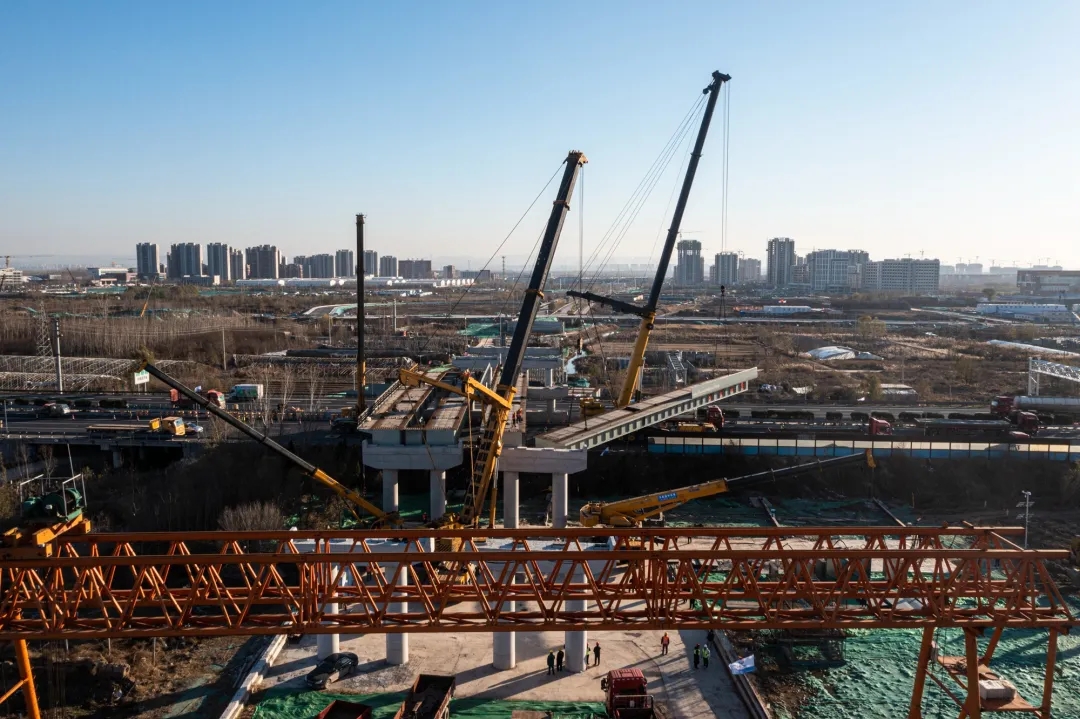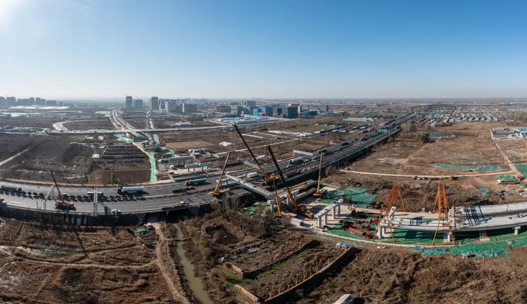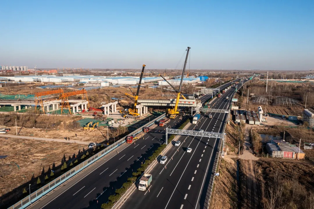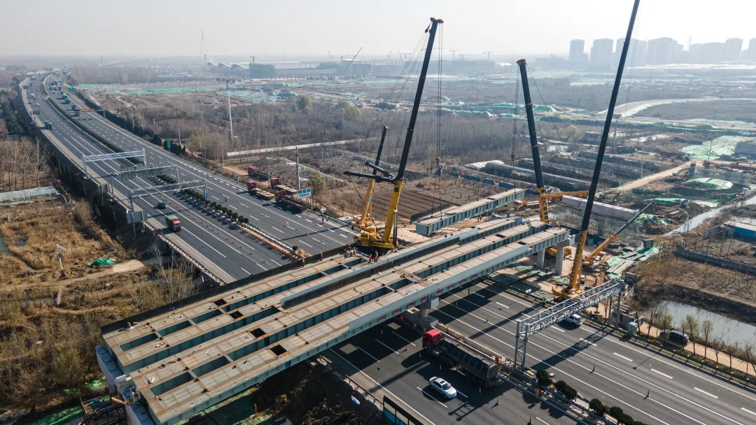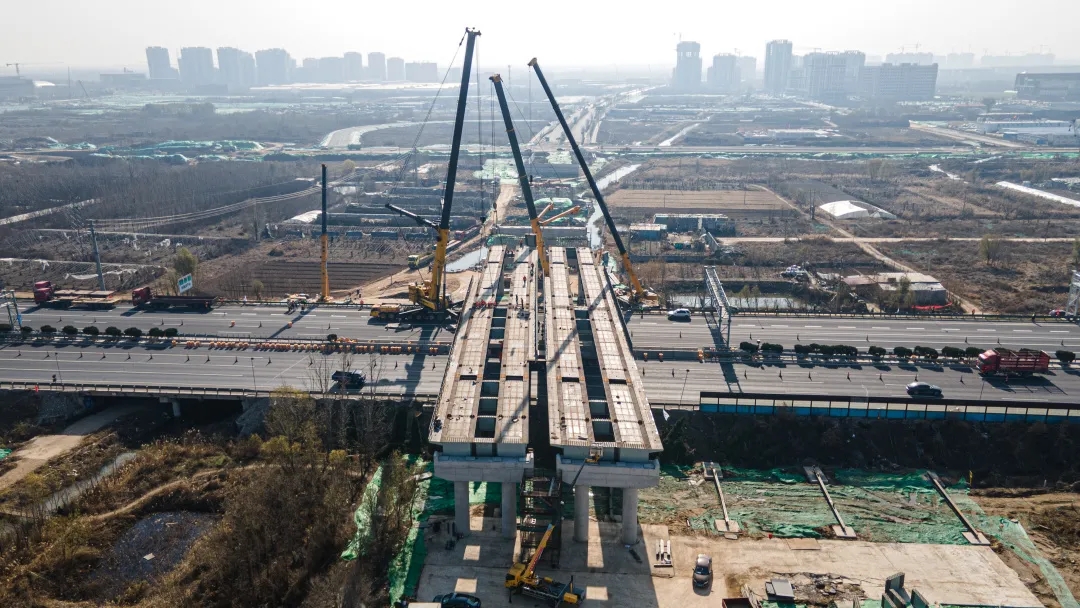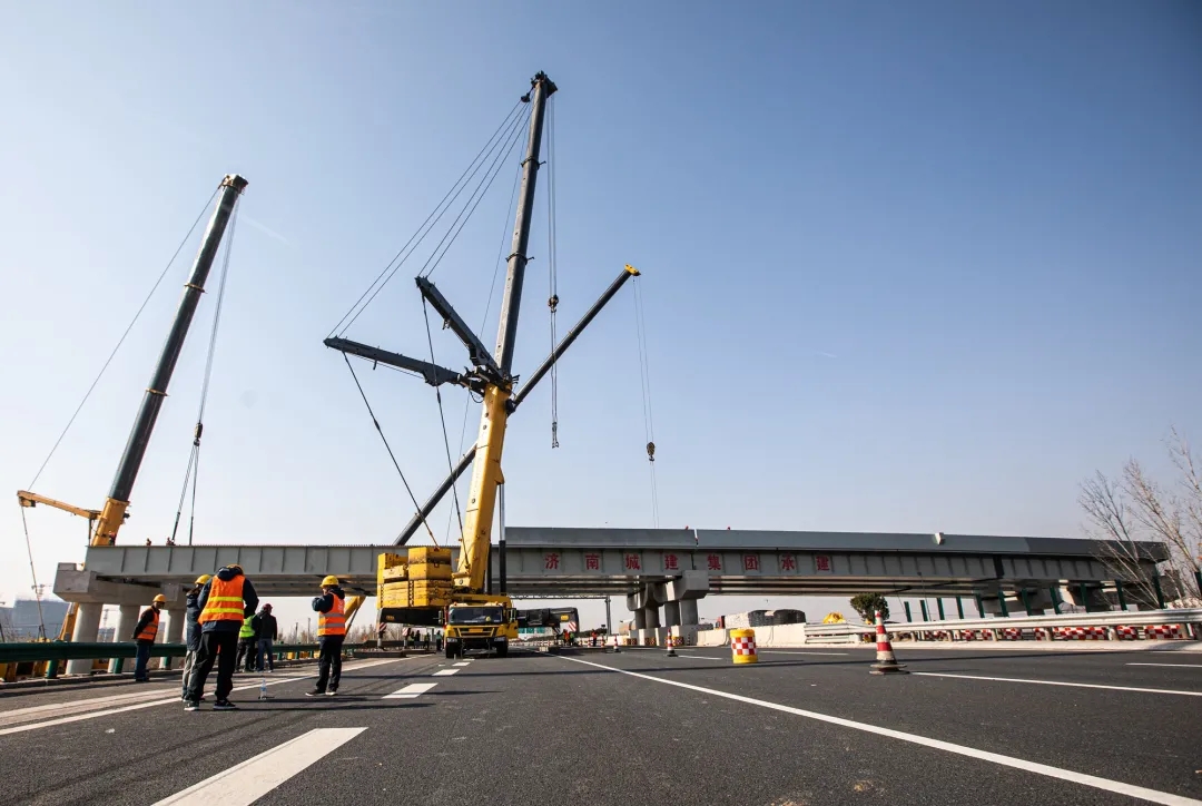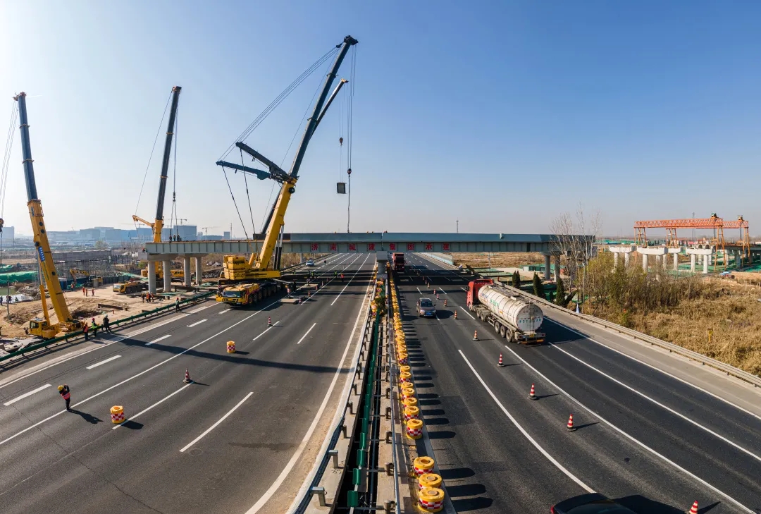 11月25日,歷時8小時施工作業(yè),由建設(shè)集團(tuán)受委托建設(shè),集團(tuán)所屬濟(jì)南城建集團(tuán)有限公司第四分公司負(fù)責(zé)施工建設(shè)的濟(jì)南新舊動能轉(zhuǎn)換起步區(qū)智慧物流園區(qū)二期工程一標(biāo)段西環(huán)路跨線橋鋼箱梁吊裝完成,順利跨越青銀高速。
