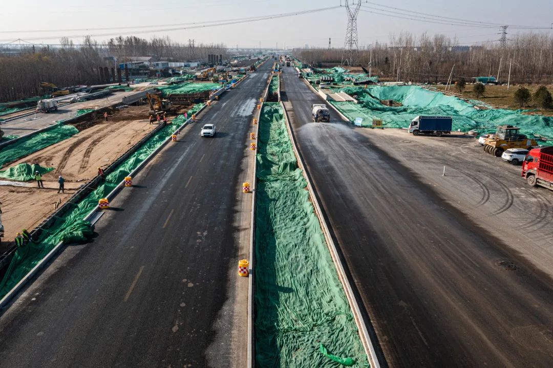 12月6日,由濟(jì)南城市建設(shè)集團(tuán)受委托建設(shè),中建八局二公司負(fù)責(zé)施工的濟(jì)南黃河大道(一期)工程五標(biāo)段(邢家渡干渠-104國(guó)道)實(shí)現(xiàn)北半幅主路快車道通車,順利完成既定節(jié)點(diǎn)施工。黃河大道該標(biāo)段通行車道由雙向兩車道增加至四車道,通行能力進(jìn)一步提高。此外,崔寨南互通立交段北側(cè)兩個(gè)匝道口開放通行,南側(cè)兩個(gè)匝道口進(jìn)入施工階段。