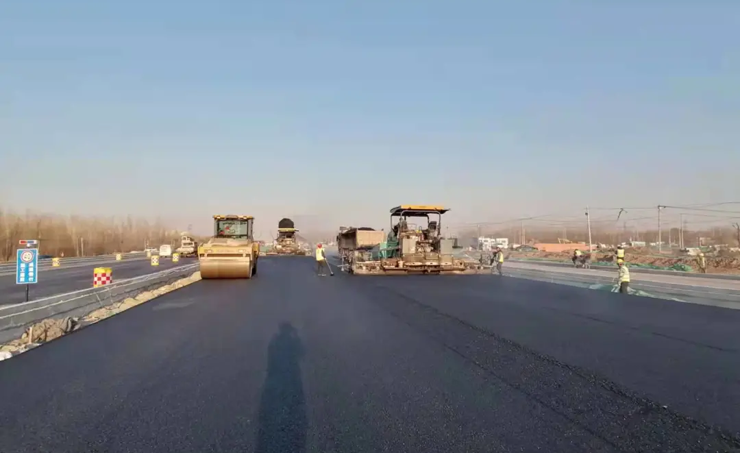 在濟(jì)樂(lè)高速崔寨南互通立交南側(cè)出口處,項(xiàng)目與山東省交通科學(xué)研究院合作,首次在濟(jì)南市政工程中試驗(yàn)應(yīng)用全厚式瀝青攤鋪技術(shù)。該技術(shù)不但能有效提高路面結(jié)構(gòu)使用壽命,同時(shí)可以減少水泥穩(wěn)定碎石的使用量,在優(yōu)化瀝青路面級(jí)配的同時(shí),節(jié)省工程造價(jià),并將施工工期縮減為原來(lái)的60%左右。