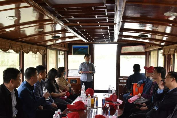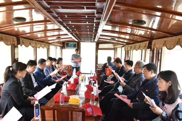 活動中,全體人員參觀了濟西濕地,并詳細了解了濟西濕地的建設(shè)情況。黨員代表分享了“中共一大南湖紅船”故事,全體黨員共同誦讀《紅船,從南湖啟航》,濕地青年員工進行紅歌表演。