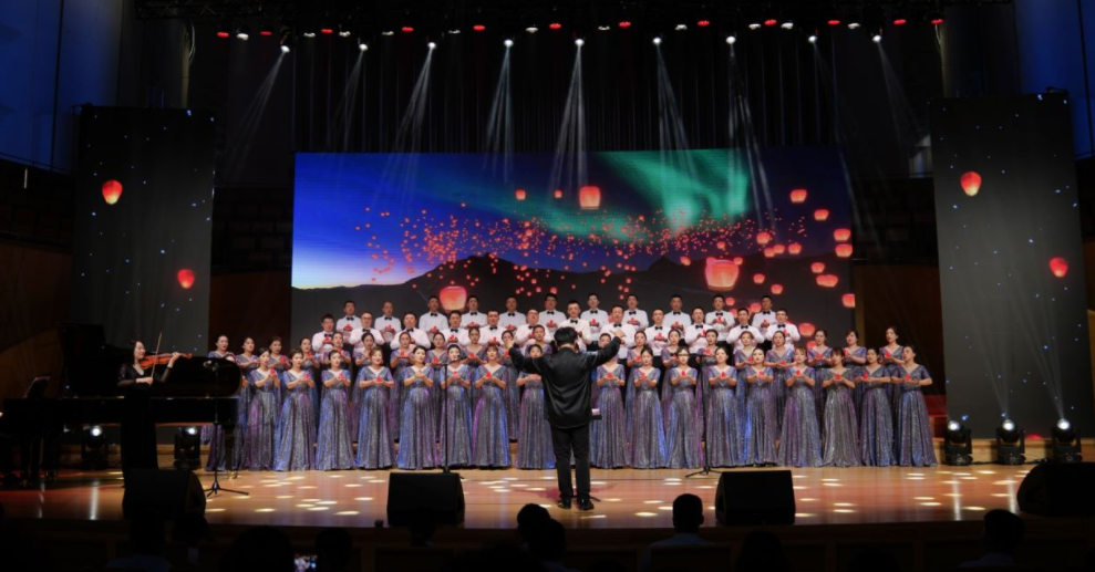 活動在《唱支山歌給黨聽》和集團總部合唱《沒有共產(chǎn)黨就沒有新中國》中拉開帷幕,按“百年追夢·慶華誕”、“千秋偉業(yè)·正風(fēng)華”、“不忘初心·定復(fù)興”三個篇章依次展開,以黨的光輝歷程為主線,在音樂中回望歷史、重溫黨史、銘記初心、砥礪前行。