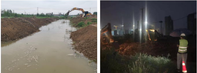 27日晚,集團工程二部組織各全詢單位現(xiàn)場管理人員56人,濟南金曰公路工程有限公司應急工人180人,大型挖掘機40臺,待命挖掘機30臺,破碎錘8臺,渡船13艘,防汛物資車5輛按時到位,直至29日凌晨,經(jīng)過連續(xù)兩晚奮戰(zhàn),已將河道斷面內(nèi)侵萎縮、邊坡坍塌、河槽淤積、水面漂浮物、規(guī)劃道路堵塞現(xiàn)狀河道等多處險情一一排除,完成沿線全部堵點清淤疏浚任務。