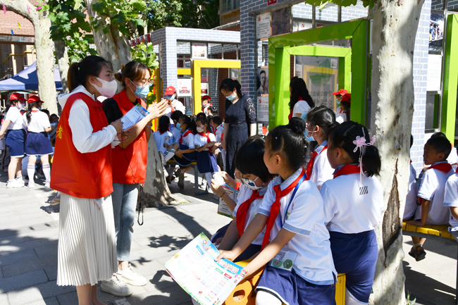 手牽手,心連心,一起成長。本次志愿者活動與全國安全月密切結(jié)合,提前印制“喜迎二十大 爭做好隊員”、“新型冠狀病毒預(yù)防指南”、“中小學(xué)生安全教育宣傳”等知識手冊,在現(xiàn)場進行發(fā)放,向小朋友們普及相關(guān)知識。