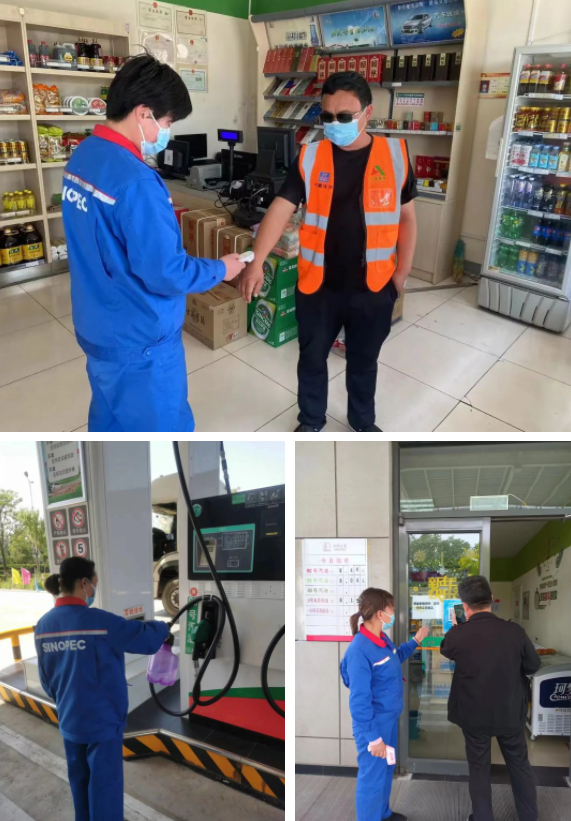 加油站作為人員、車輛流動區(qū)域,疫情防控尤為重要,各站點嚴(yán)格執(zhí)行重點區(qū)域(加油槍、營業(yè)室把手、加油機等)不少于3次消殺要求,嚴(yán)格落實掃碼、測溫等措施。同時為客戶備好消毒液、洗手液,引導(dǎo)客戶使用中石化“一鍵加油”,實現(xiàn)無接觸加油消費,提升客戶消費體驗和滿意度。在加強疫情防控的同時,嚴(yán)格按照“八步法”、接卸油流程進行規(guī)范操作,確保安全運營。