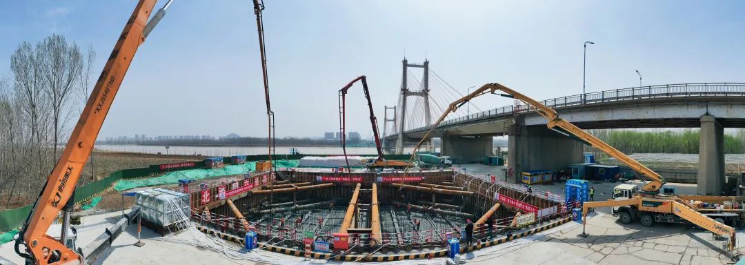 101#主墩承臺是主橋段體積最大的承臺,項目部科學組織、合理部署,優(yōu)化各項施工方案,強化技術(shù)創(chuàng)新,率先完成首座主墩承臺一步混凝土澆筑,有力促進了黃河大橋整體工作平穩(wěn)推進。