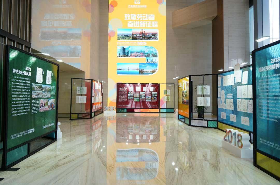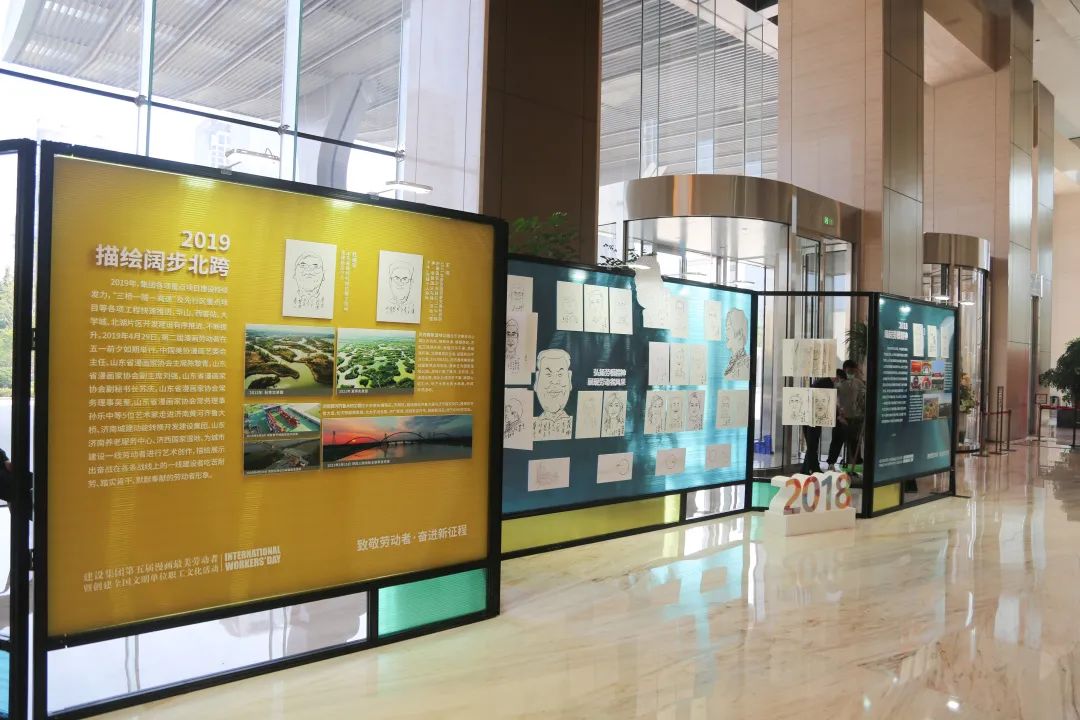 在第五屆“漫畫最美勞動者”活動中,12位書畫家在濟(jì)南城市建設(shè)大廈,為集團(tuán)2019—2021年度榮獲市級以上榮譽獲得者創(chuàng)作書畫作品,同時,舉辦了過往四年漫畫作品展,以時間跨度為展覽軸線,從“人物成長”和“項目發(fā)展”兩個維度,從“2018·緣起勞模精神”“2019·描繪闊步北跨”“2020·三載重逢嘆巨變”“2021·學(xué)史力行展風(fēng)采”四個章節(jié)集中呈現(xiàn)集團(tuán)建設(shè)精神、勞動精神和重點項目的建設(shè)歷程,不斷凝聚人心,激勵廣大干部奮力攻堅,為新時代社會主義現(xiàn)代化強(qiáng)省會建設(shè)貢獻(xiàn)力量。