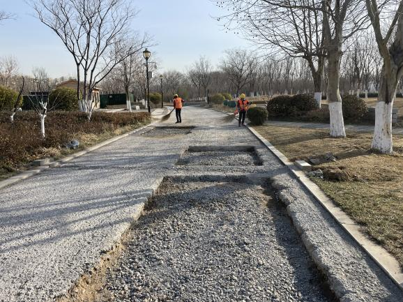 針對(duì)市民反映的補(bǔ)修華山湖北岸部分道路的訴求,集團(tuán)高度重視,工程二部相關(guān)工作人員立即到現(xiàn)場(chǎng)實(shí)地勘察,組織編制整修方案,確定將上部松散面層銑刨后,更換為瀝青面層,并于2月28日進(jìn)場(chǎng)實(shí)施。科學(xué)組織,加強(qiáng)調(diào)度,在保護(hù)公園環(huán)境及周邊既有設(shè)施不遭破壞的基礎(chǔ)上,于3月25日施工完成,比預(yù)計(jì)時(shí)間提前一周。