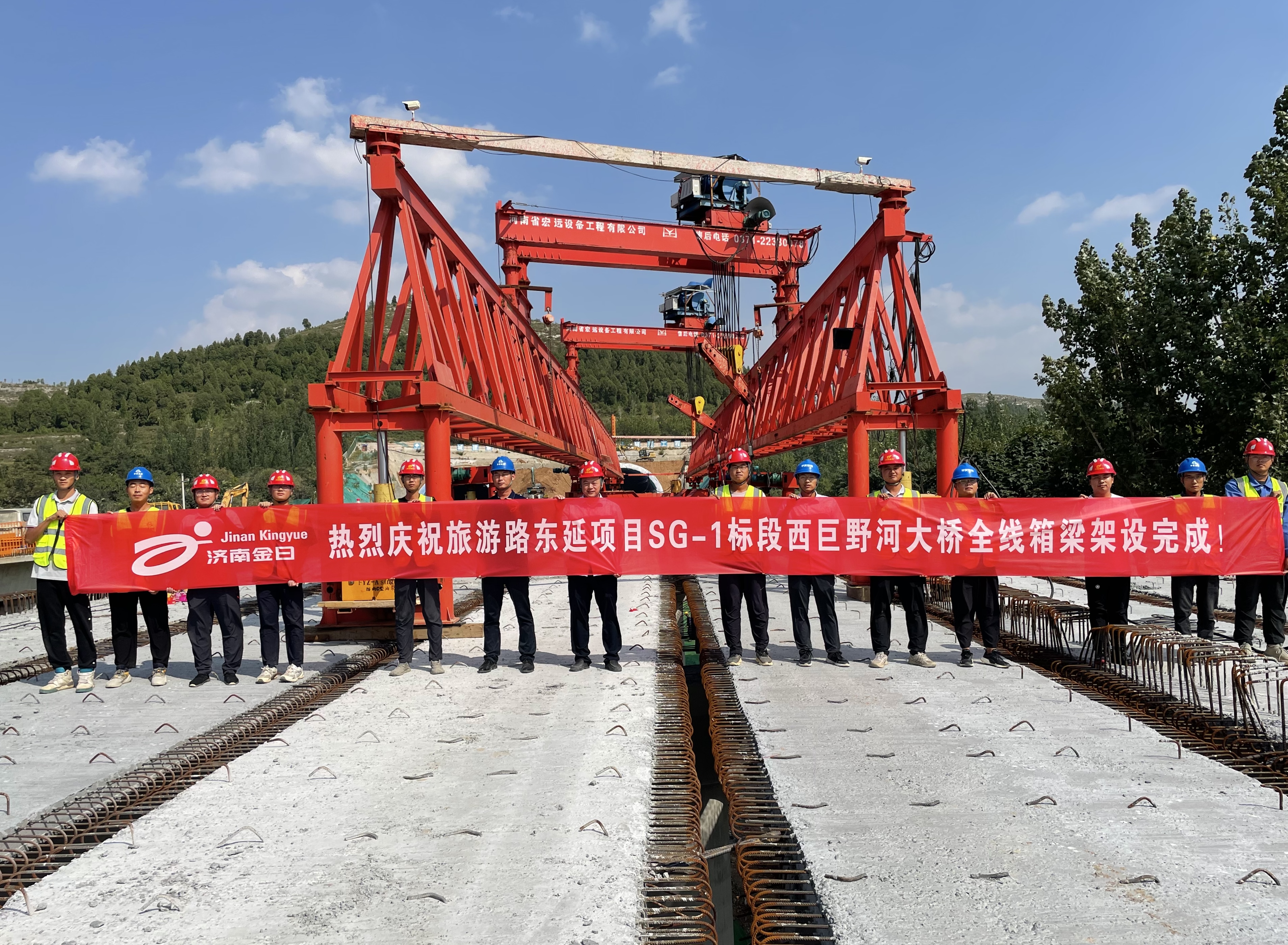 9月22日,隨著一片長(zhǎng)30米、重約105噸的箱梁穩(wěn)穩(wěn)就位,由建設(shè)集團(tuán)所屬濟(jì)南金曰公路工程有限公司承建的旅游路東延項(xiàng)目西巨野河大橋梁板架梁施工圓滿完成。